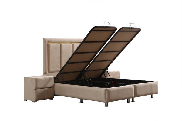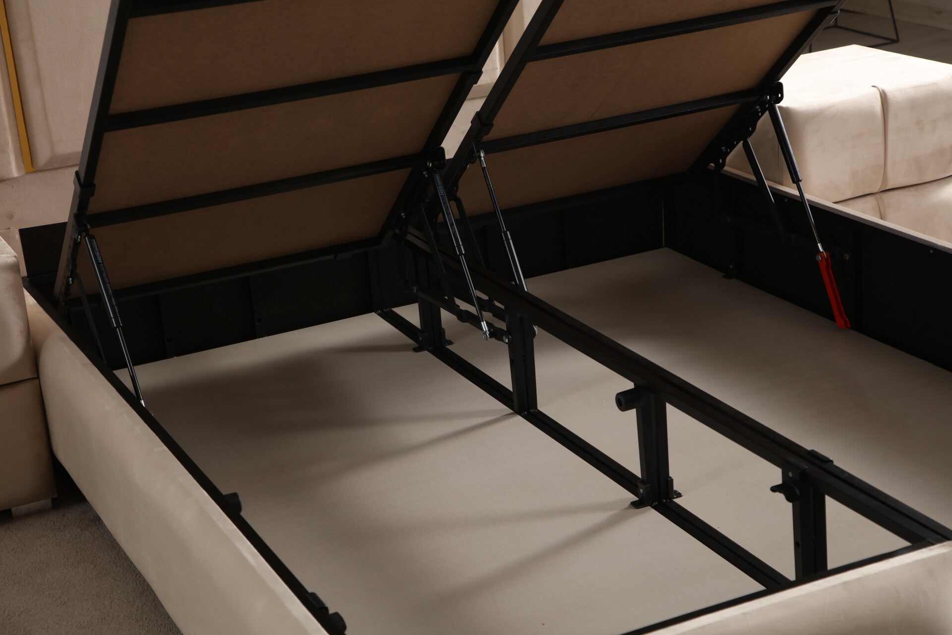 Élégance et praticité s’invitent dans votre chambre avec le lit coffre BERGAMA.
