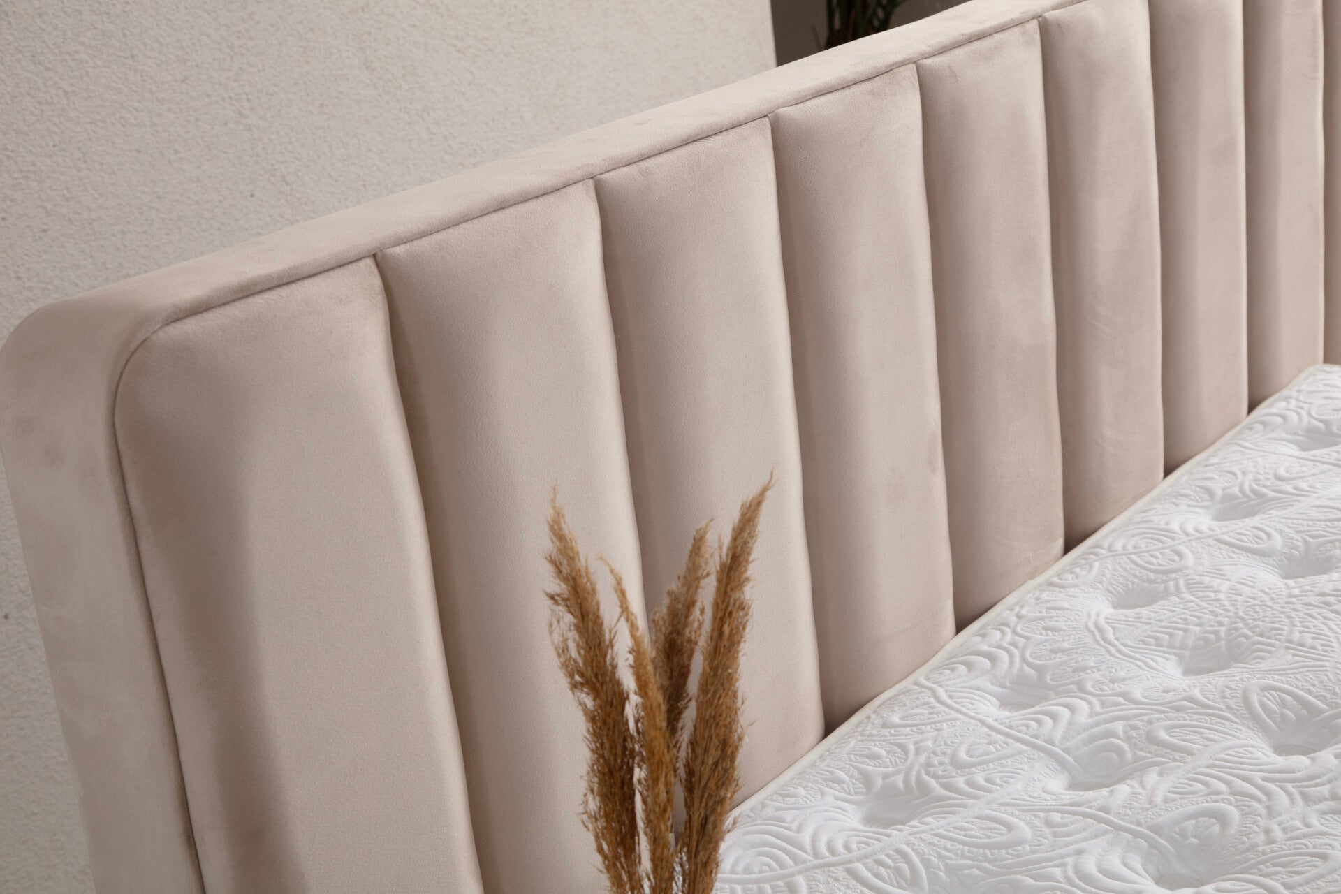 Son revêtement en velours raffiné apporte douceur et élégance, tandis que sa tête de lit élargie devient un véritable élément décoratif qui valorise votre espace nuit. Pratique et discret, son coffre de rangement intégré vous permet de garder une chambre organisée et toujours impeccable.