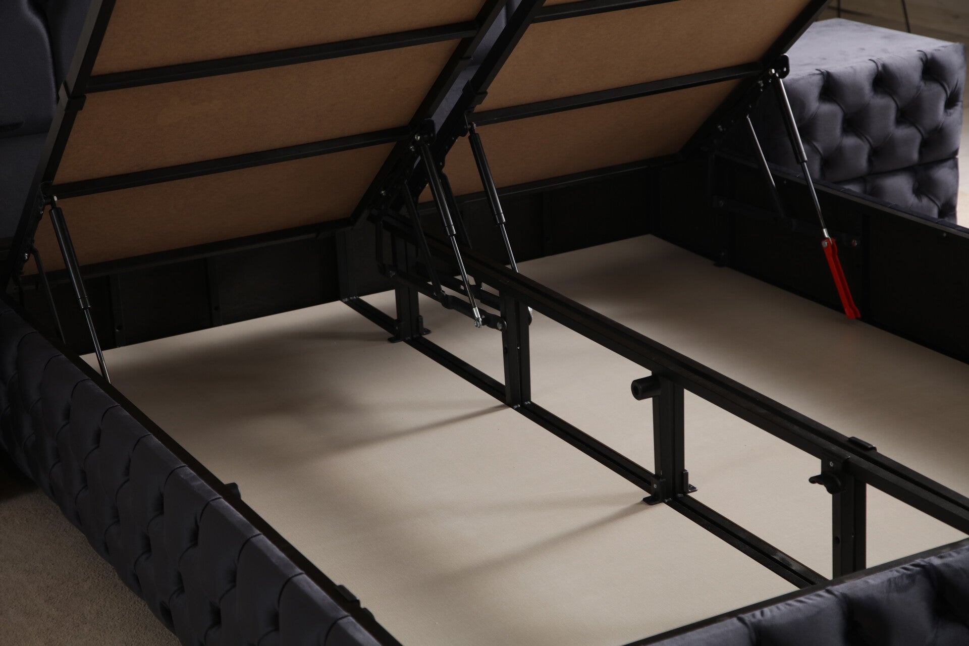 Son velours anti-tache capitonné apporte élégance et sophistication à votre espace nuit. Pratique, son coffre intégré vous permet de ranger vos affaires en toute discrétion tout en optimisant l’espace.